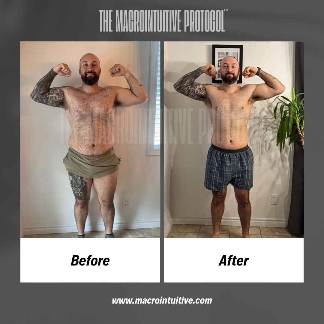 I designed the MacroIntuitive Protocol™ and my entire coaching system after losing almost 50 lbs myself.